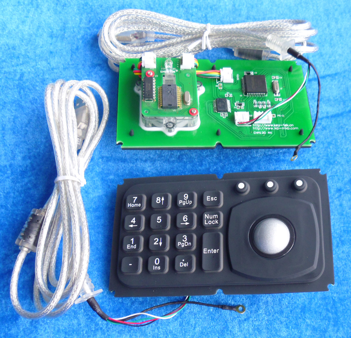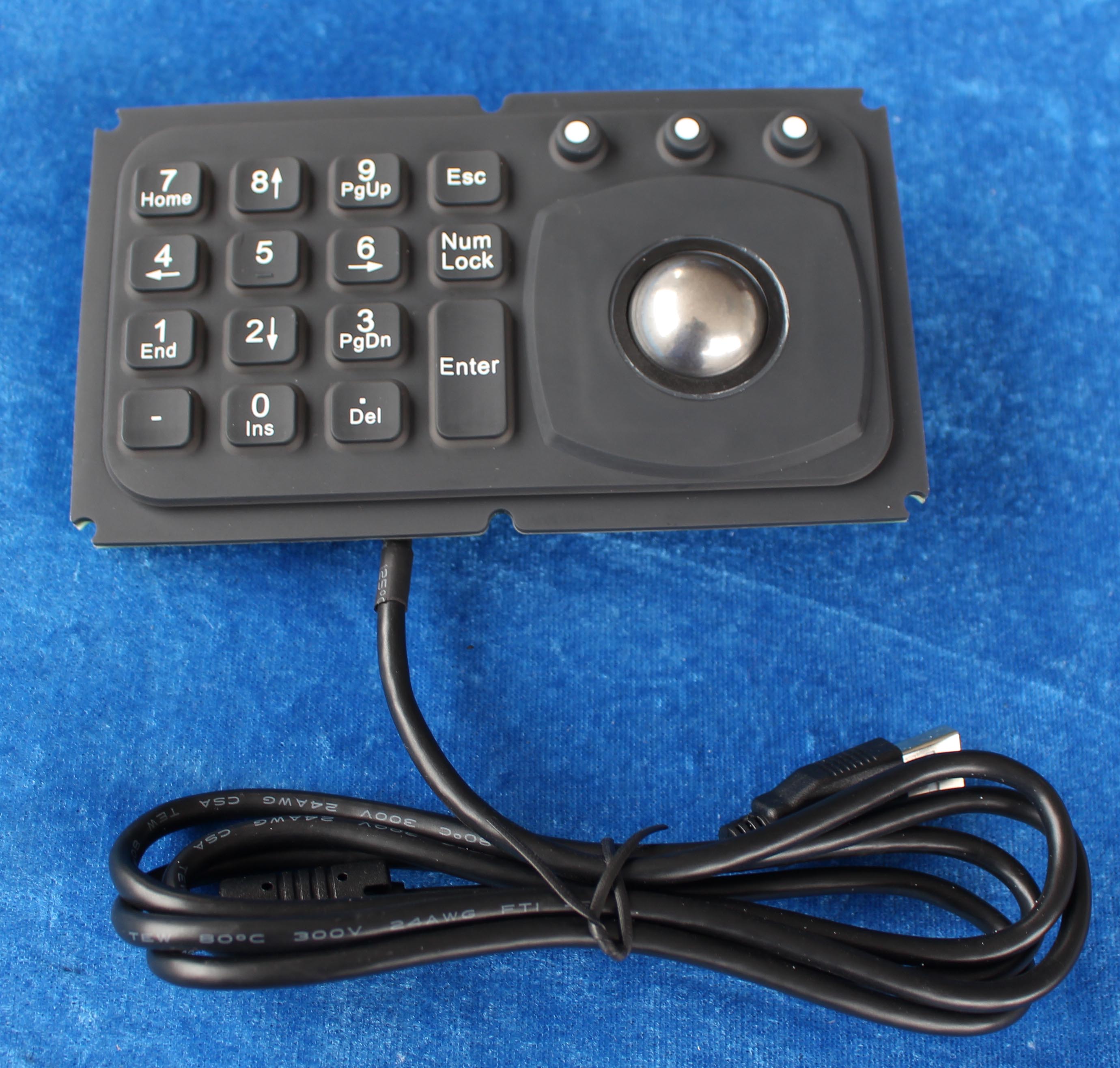 mini 15 key silicone rubber panel mount keyboard with 38 mm optical trackball