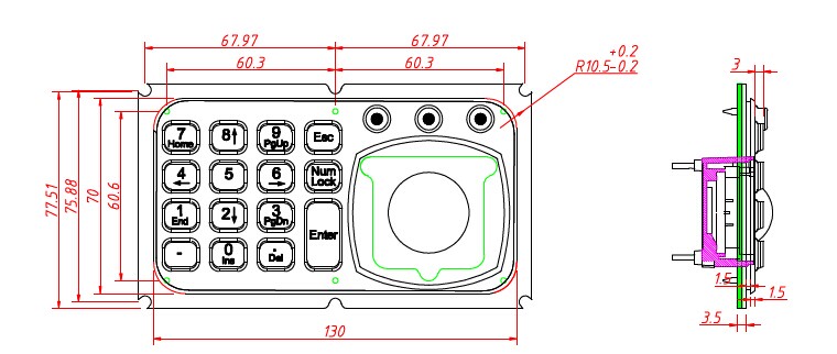 and accurate cursor position, industrial PCB with carbon-on-gold key switch technology with