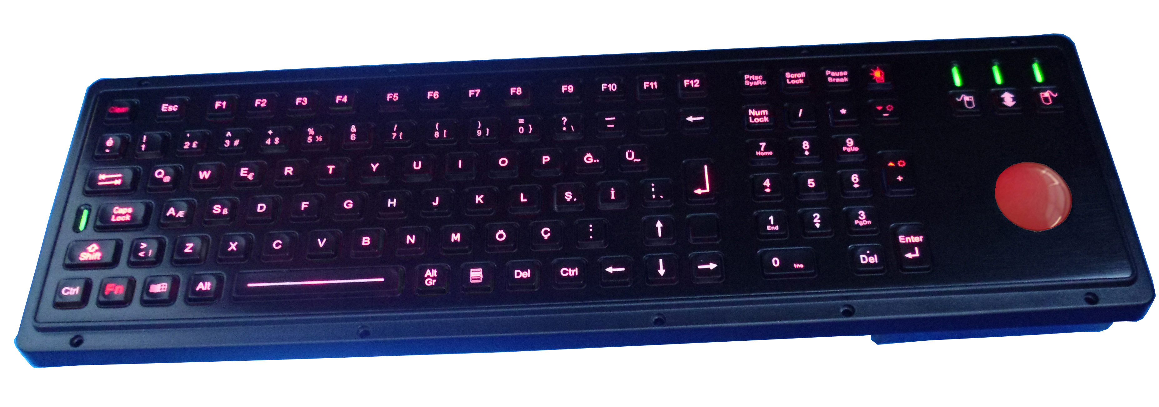 Turkish scrachproof illuminated ruggedized keyboard with numeric keypad , trackball Images |