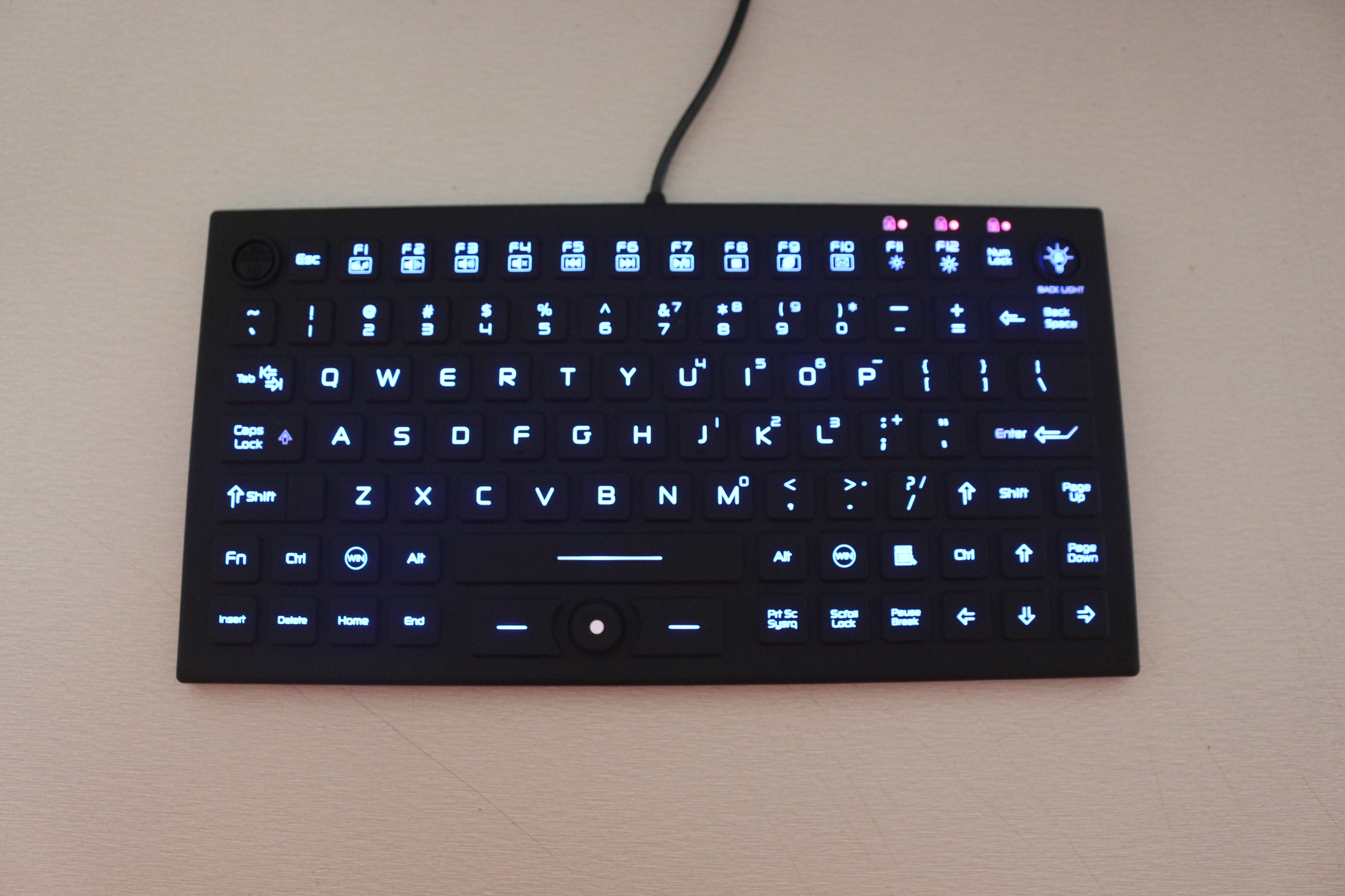 Industrial waterproof rugged medical grade keyboard with trackpoint with blacklit